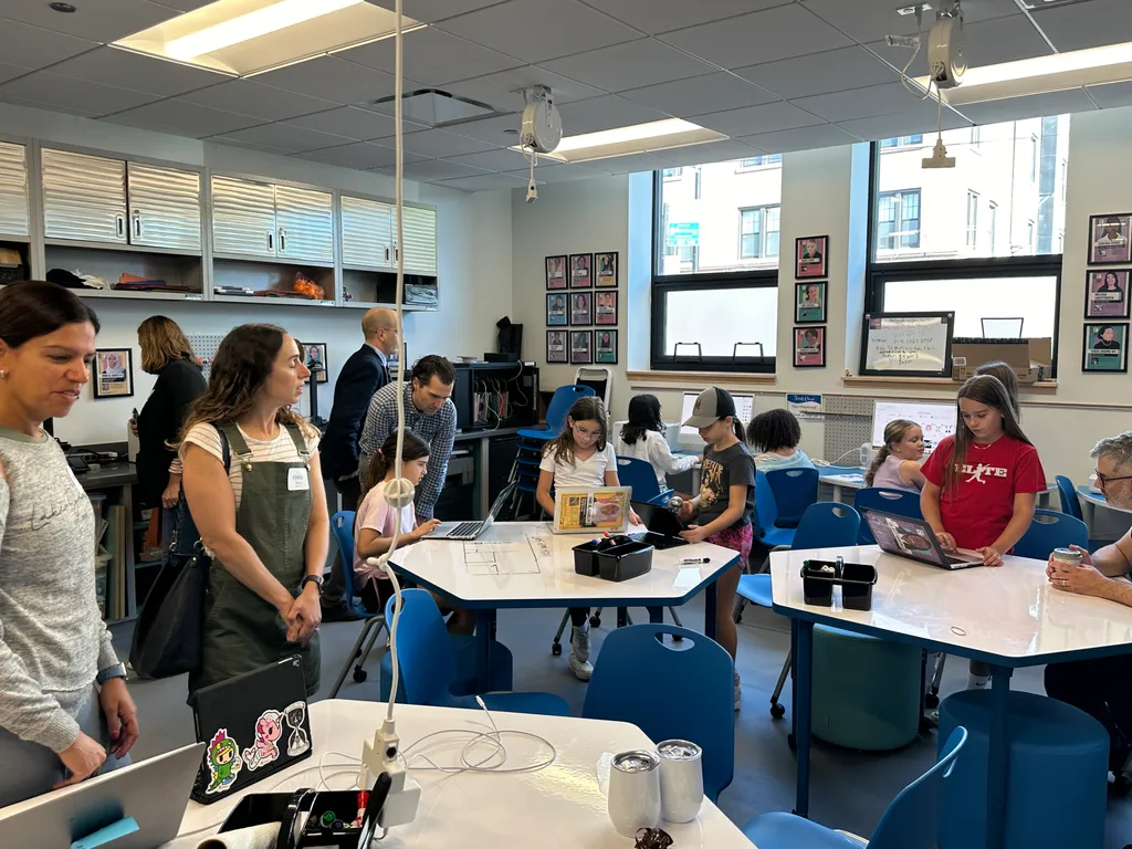 Students school-wide engage in design-thinking in our state-of-the-art Innovation Lab through select units in their classroom studies, designated supervised recess periods, and after-school club programming. Middle School students also engage in a semester-long course in design thinking each year. Design thinking is a skills-rich process for real-world problem-solving that integrates key skills and concepts from STEM, Literacy, Social Studies, and the Arts. The enduring multi-step process for problem solving students learn in design thinking challenges them to understand problems on a deeper level and develop possible solutions to be tested and then re-designed as needed. Design thinking challenges all students to think expansively about a better world while practicing and developing a wide range of useful skills for future studies and for their lives, including: