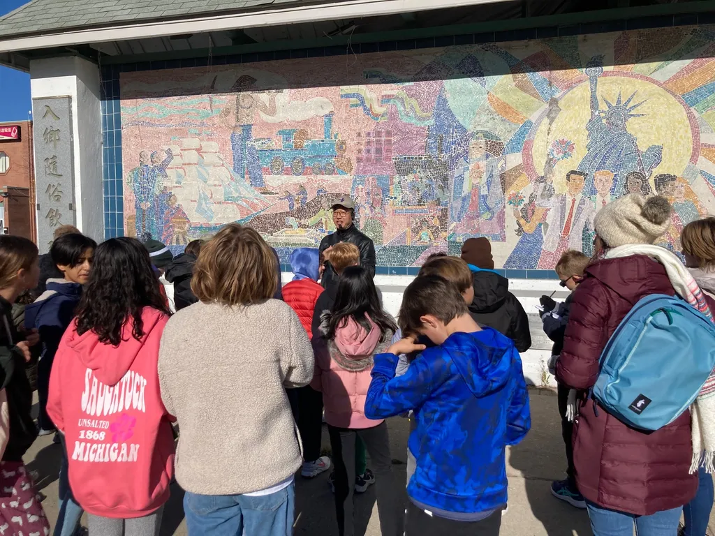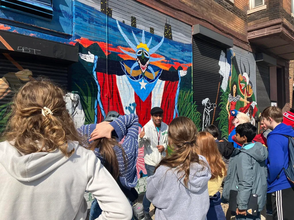 Middle School students also engage in periodic neighborhood explorations, learning with respect about the history, geography, and demographics of a Chicago community before participating in a guided walking tour of the area with a focus on culture, history, architecture, art, and social justice issues like affordable housing, employment opportunities, access to health care, and more. Upon return to school, they create something (such as a work of art, a poem, a podcast, or video) that poses or explores a question they have about the community they visited to share with our school community. Recent neighborhoods explored include Humboldt Park, Chinatown, Bronzeville, and Uptown.